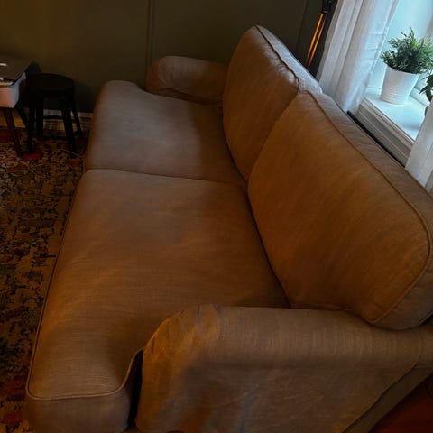 IKEA Stocksund 3 seter sofa gis bort. Sofaene er brukt men fremdeles i god tilsand. Avtagbare og vaskbare trekk. Farge er mørkgrå/mørk beige. Sofan skulle selges på grunn av flytting, men jeg fikk ikke fulgt opp saken og sofaen ble lagt ned i en kjeller (tørr og fin) Sofaen ligger nå i kjelleren siden sommeren og ønskes gitt bort. Må hentes kveldstid på fredag eller på fredag/lørdag 30
