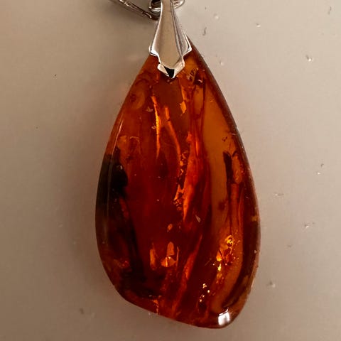 Pent rav anheng uten kjede/lenke selges. Anhenget er stemplet med 925. Ingen riper eller andre bruksmerker. Stenen måler 2 x 1 cm (+ anhenget i sølv). Sender gjerne til kjøper.