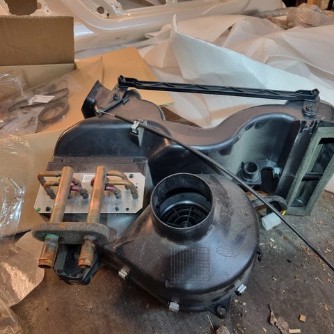 1stk motor. Diverse oljelekkasje samt noe tungstartet. Men startet å gikk før demontering. Samt 1 nesten komplett motor i deler. Overhaling / rep må påregnes.