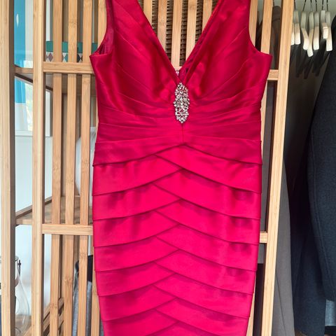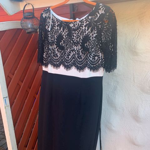 Helt ny ubrukt kjole, flatterende og fin i fasongen. Foret og blondenønstret overdel. Nypris 2500 kr