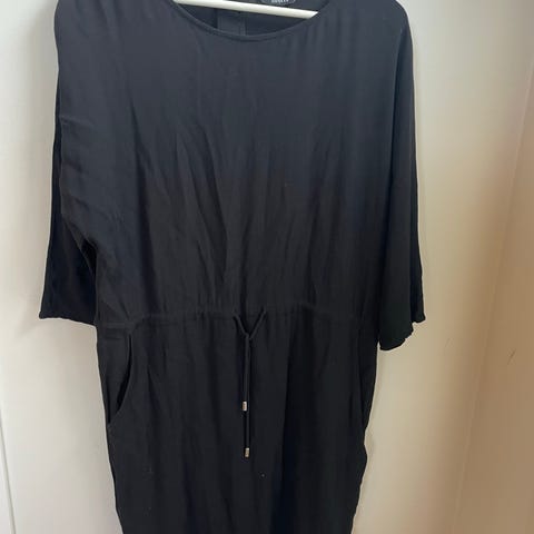 Lang kjole i str. XL i 87% viskose og 13% nylon. 3/4- ermer med strikk, og strikk i midjen bak. Ny pris var kr 1400.