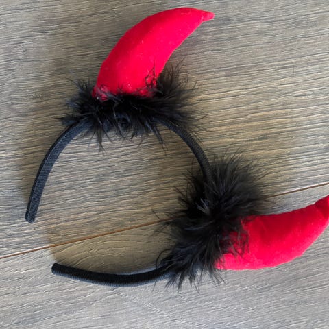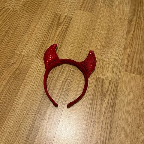 Røde djevelhorn med glitter, pent brukt, kan sendes