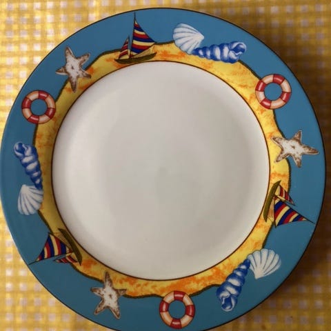 Noen mørke merker på det hvite (den er ikke gul slik det ser ut på bildet)