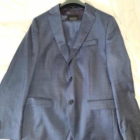 Dressen er som ny, kun brukt noen timer. Buksen er lagt opp av skredder men jeg kan være behjelpelig med å legge den ned om det er behov. Dressen er brukt av en mann på 180 høyde, som var litt romslig rundt livet. Fargen er meget fin, bildene yter ikke den rettferdighet.
