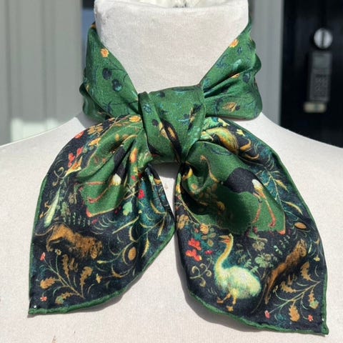 Fint silkeskjerf i flotte farger. Størrelse 53x53cm