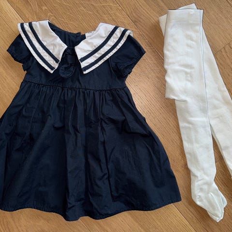 Pent brukt blå kjole fra name it med bleiebukse/underdel til. Fra røyk- og dyrefritt hjem. Se mine andre annonser mht om jeg evt skal sende flere plagg samtidig.