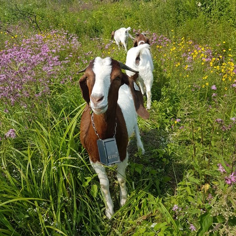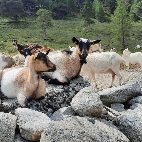 Vi har en nydelig gjeng med de skjønneste geiter, som vi leier ut i sommer, for landskapspleie. De er av den bevaringsverdige rasen norsk kystgeit. Nei, de trenger ikke fysisk gjerde, for de går med elektronisk klave rundt halsen, som piper dersom de nærmer seg grensa vi legger inn på kartet, Dersom de likevel velger å trosse den, får de et lite strømstøt. Geiter er lettlærte, så de forholder seg som oftest til pipingen:-)