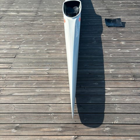 Carbonology Surfski Vault til salgs. Hybrid Epoxy Vacuum. 6,1 meter. 12,5 kg. Ny pris ca. 23 000
