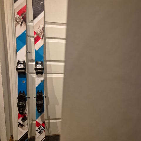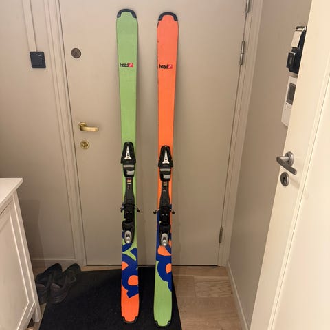 Lite brukte twintipski frå Head med sko i str 38 og stavar frå Scott. Dei har stått lenge i innvendig bod og har litt rust på kantane, men har mykje bruk igjen.