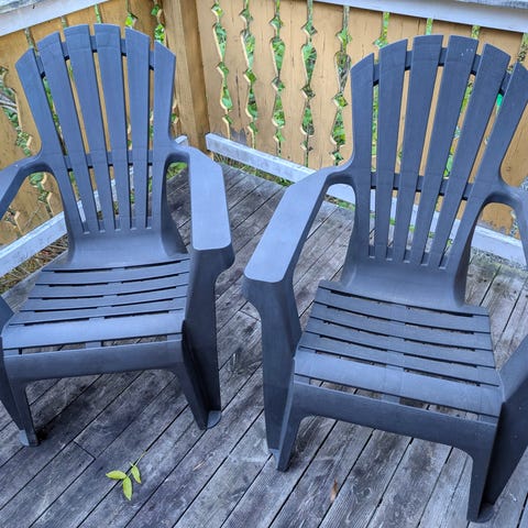 Svært pent brukte hagestoler i plast, inkludert puter selges samlet for 250kr. Stoler og puter er kun brukt av eldre par inne på en innglasset balkong og har ikke stått ute i vær og vind. Merke: Grosfillex