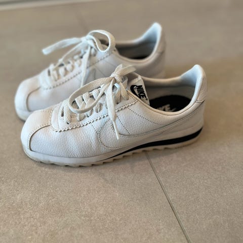 Pent brukte Nike cortez, hvite med sort