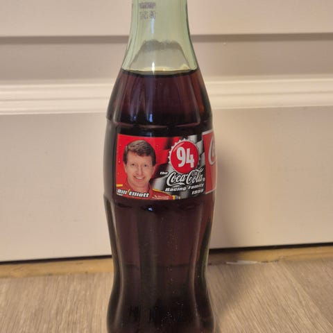 Coca-Cola glassflaske fra USA. Utgitt i forbindelse med billøpet Nascar 1998. Flasken har motiv av sjåfør av bil #44 Kyle Petty. Uåpnet. Kan sendes med postnord for 69,-.