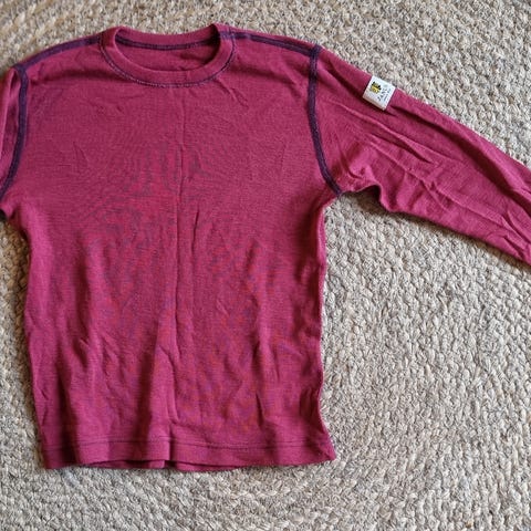 1. Rød genser med hvite prikker fra Kids. 40 kr.