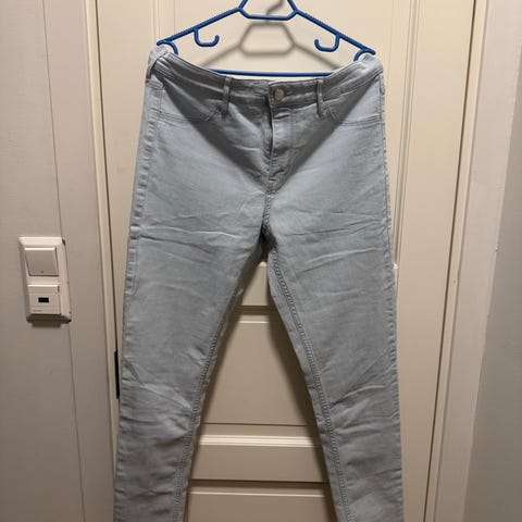 Buksene har en liten defekt nederst på venstre ben (små hull i stoffet) som allerede var der da jeg kjøpte dem (se de to siste bildene). Men det er vanskelig å se det når man har dem på.