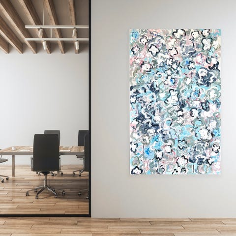 The botanical forms on the canvas are inspired by flowers but in an abstract way in order to create a visual language that gives the viewer room for their own interpretations and dialogues. There is a constant awareness in her work to create translucency and light within the paintings and to show the ethereal beauty of nature.