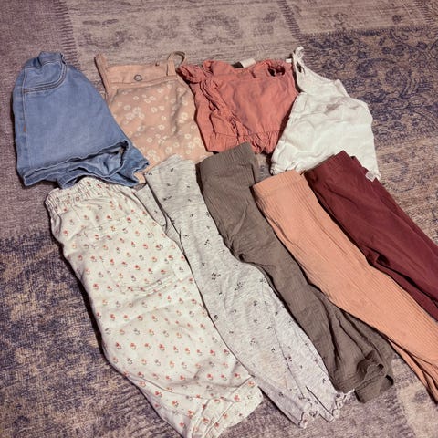 Stor klespakke til jente med tilsammen 28 plagg selges for 250 kr.