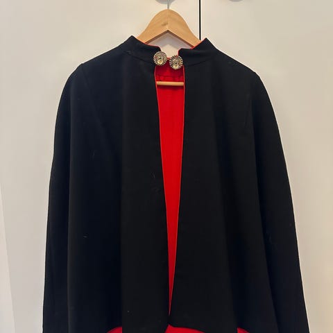 Pen cape til Vestfold bunad. Kan brukes med sort eller rød side ut.