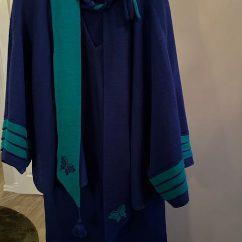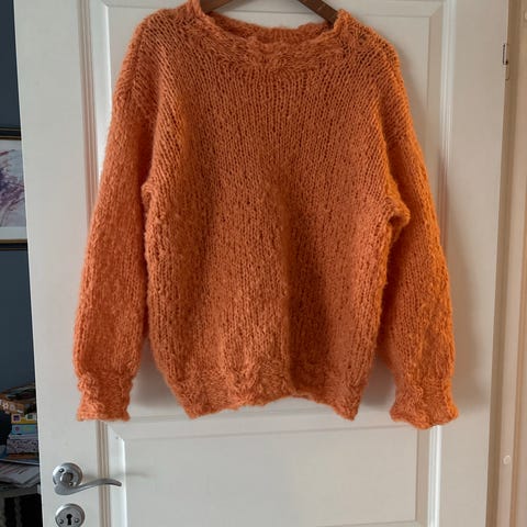 Nydelig hjemmestrikket ulldrakt i offwhite med sorte detaljer. ✨️