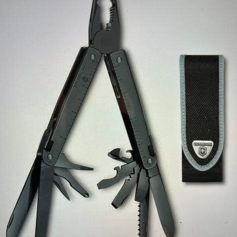 VINTAGE! SAMLEROBJEKT! Swiss Army lommekniv, "Farmer", med sag. På internett kan man lese at kniven ble produsert 1957-60. Vet ikke akkurat når denne ble kjøpt, men den ble kjøpt i Sveits av min far, som kom dit i 1946 og bodde der til og fra, inntil høsten 1957. Deretter var han der svært ofte i mange år. Kan altså være en veldig tidlig utgave. Rødfargen er noe avslitt etter bruk, men alle verktøydelene er pene og i god stand. Knivbladet er merket Victorinox Switzerland Stainless Rostfrei. Knivens lengde 9,3 cm. Funksjonen er utmerket, men den trenger litt smøring. Er litt treg i "utfoldingen". Selges fordi vi synes det er synd å slite ut et internasjonalt samlerobjekt. Se annonse fra Internett på de 2 siste bildene. Kan hentes eller sendes som Postens lille Norgespakke for kr 73. Tar kr 10 for emballasjen hvis jeg må sende. Har Vipps.