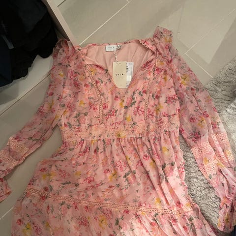 Passformen er designet for å flattere, og lengden passer flott til deg som er ca. 1,60 m høy – den faller elegant ned til anklene uten å bli for lang. Stoffet er lett og behagelig, og det blomstrete mønsteret gir et friskt og romantisk preg.