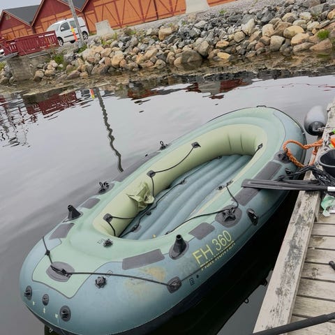 Lett gummibåt med ubrukt elmotor.