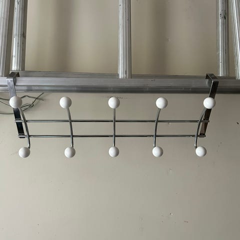 Mulighet å henge på øverste og midterste stang fe handkle, nederst finnes 4 knagger som kan flyttes på stang etter eget ønske.