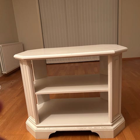 Har brukt den til TV-benk. God plass til oppbevaring. Er turkis. Må hentes.