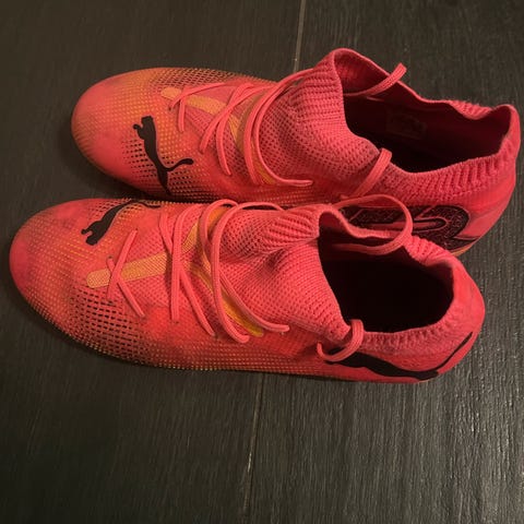 Selger et par brukte Puma V1.10 fotballsko i størrelse 37,5. Skoene er i god stand og har lite slitasje, som du kan se på bildet. Dette er et klassisk og lett par fotballsko som passer perfekt for deg som ønsker kvalitet og komfort på banen.