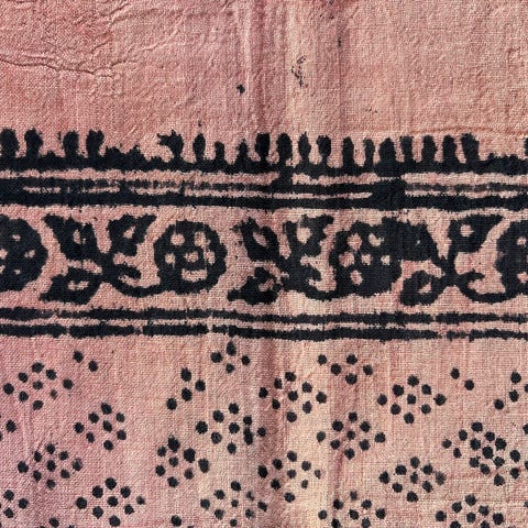 Nydelig turkis farge med broderier i bl.a gull. Frynser i én ende.