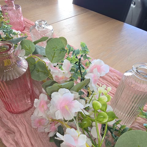 12 stk vaser i plast som kan brukes til bordpynt med blomster.