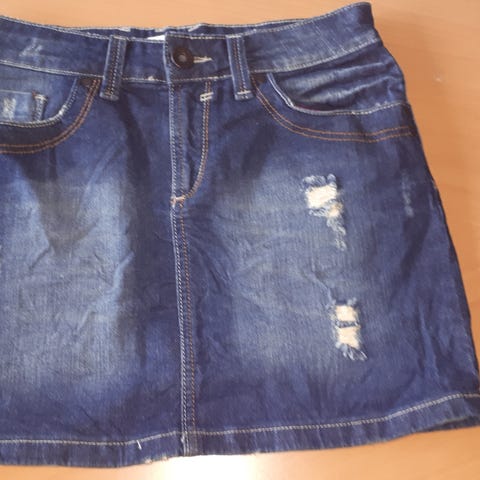 Søt denimskjorte i dus blå med hvite prikker, myk i stoffet, str 40, fra Lindex, brukt to ganger og siden hengt i et skap