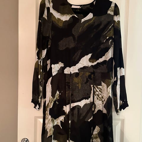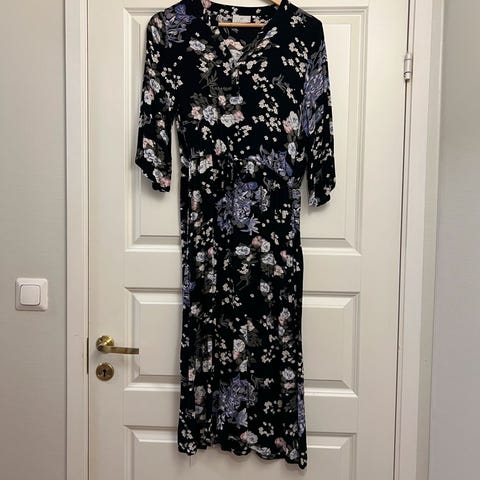3/4 lange ermer med strikk nederst. Knappelukking i hele lengden.