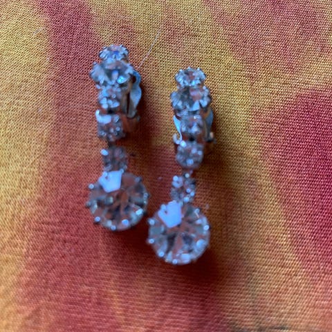 Fine strass-øredobber fra Other Stories. Gullfarget metall og klare og lys grønne steiner. Veldig fine på, ingen bruksmerker👌