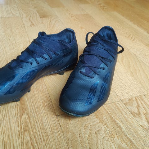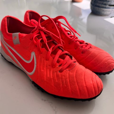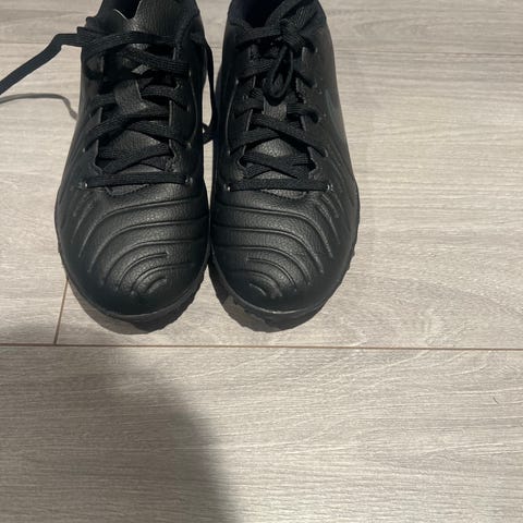 Selger et par Nike Tiempo fotballsko i størrelse 44 – klassisk sort med hint av mørk blå. Brukt, men fortsatt klare for mange flere tunneler og mål fra distanse.