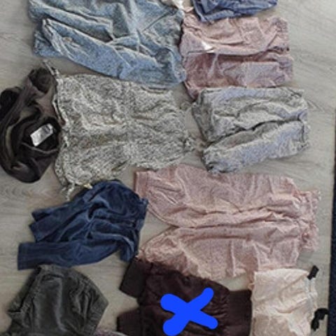 Kan forekomme flekker, ikkje så synlig pga mønster. Sydd den ene buksen litt på et kne
