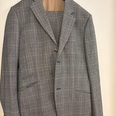 Selger en pent brukt og klassisk Mario Conti dress i grått rutemønster – perfekt til formelle anledninger, jobbintervjuer eller fest. Dressen består av blazer og bukse i størrelse 48 (B2).