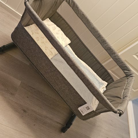 Bed-side-crib med madrass (40x84 cm) og 3 laken selges.