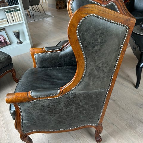 Lenestoler i engelsk chesterfield "wing chair" stil