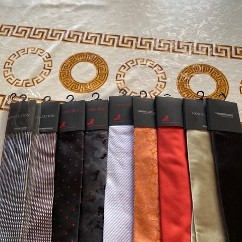I god stand, men med noen bruksspor. Kom gjerne innom sentralt i Bergen for å vurdere slipsene før eventuelt kjøp