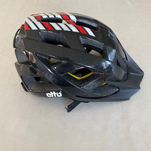 Godt brukt sort/grønn sykkelhjelm for barn selges rimelig. Brukt av gutt 6-12 år.