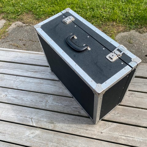 Meget solid og kraftig koffert til trekkspill eller andre instrumenter. Fremstår som ny. Kledd med mykmaterialer. Innvendige mål: B = 43,5 x D = 41,5 x H = 24 cm.