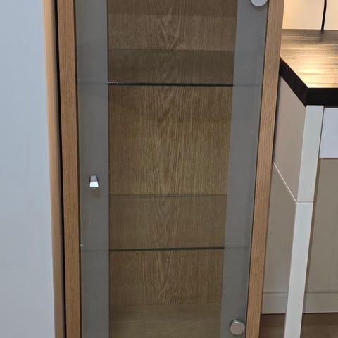 6 stk overskap med glassdør, 3 glasshyller i hver. Selges gjerne samlet.