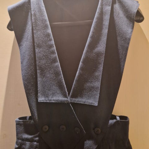 Pen og lite brukt buksedress/buksedrakt i 55% lin og 45% viscose til salgs kr 300. Det står størrelse L, men den er liten i størrelsen og jeg vil heller si størrelse S. Kort jakke, bukse med vide ben og ensfarget belte i stoffet.