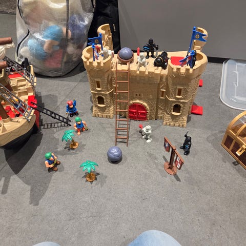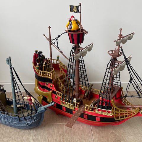 Håper andre barn kan få gleden av å leke med dette spennende sjørøverskipet,med flere luker som kan åpnes og "planke" som kan skyves ut.