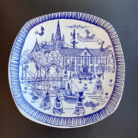 Veggplatter i serien Norske Storgårder og Minnesteder. Figgjo og Norske kvinners sanitetsforening samarbeidet om serien. Tegner var Fredrik Matheson. Blaafarveværket i Modum, Rosendal i Kvinnherad, Lossiusgården i Kristiansund og Kjerringøy ved Bodø. Finnpris er for fire veggplatter. Se bilder for pris per veggplatte