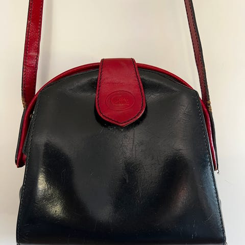 Veske med bilde av Che Guevara. Rød med sort trykk. Rem som kan justeres. Glidelås. Ett rom. Ikke skinn. Litt sprekker øverst innvendig. Kan sendes på kjøpers reg.