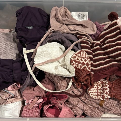 Noen plagg er helt nye, rakk ikke å bruke dem. Andre ble brukt bare 1 gang. De ser helt nye ut.