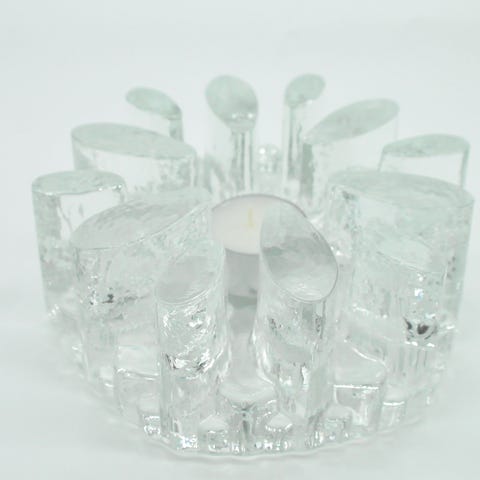 1 spesiell og flott t-lysholder. H.6 cm, B. 15,5 cm. Den er massiv, og tung, veier 1670 gram!! Rundt t-lyset er det 12 kraftige pynte «stolper» stikker opp. Noe som gjør den spesiell og ekstra fin! Fremstår «SOM NY».