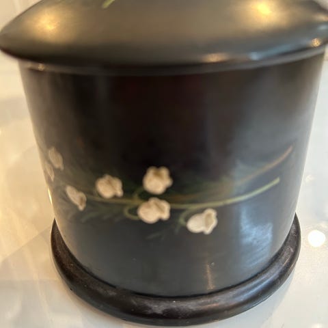 Fint lite vintage smykkeskrin lakkert 11,5*4 cm