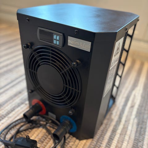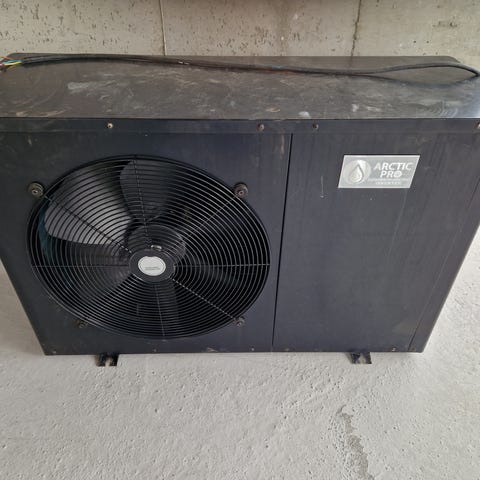 Vi bruker ikke bassenget lenger, så vi selger varmepumpen.